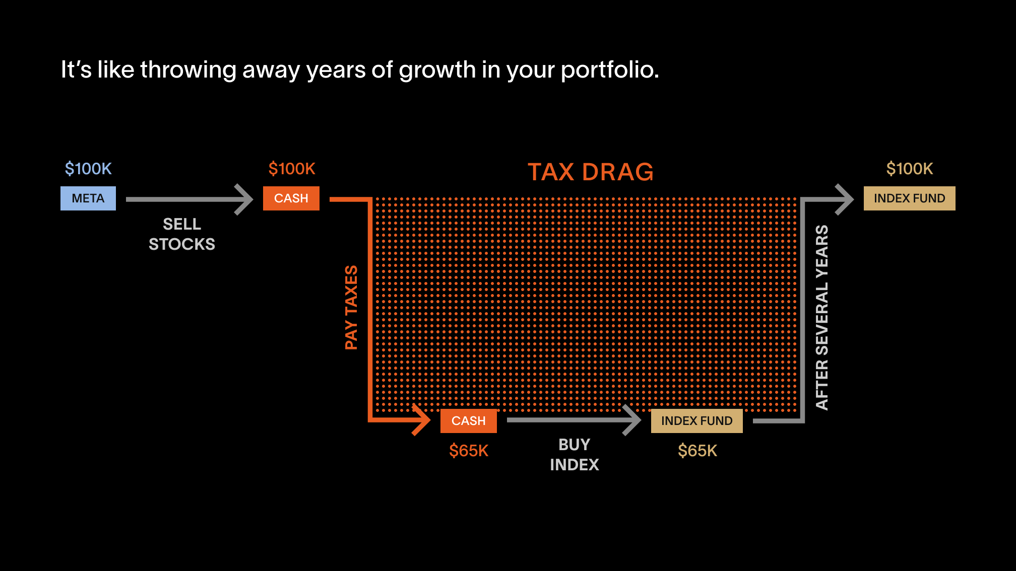 We recently conversed with a seasoned Facebook engineer who was contemplating the optimal method to diversify his META stocks. Typically, he would sell the stocks to acquire a diversified ETF, but he hadn't considered tax drag. It's a concept that both he and you must grasp to make fully informed investment choices.